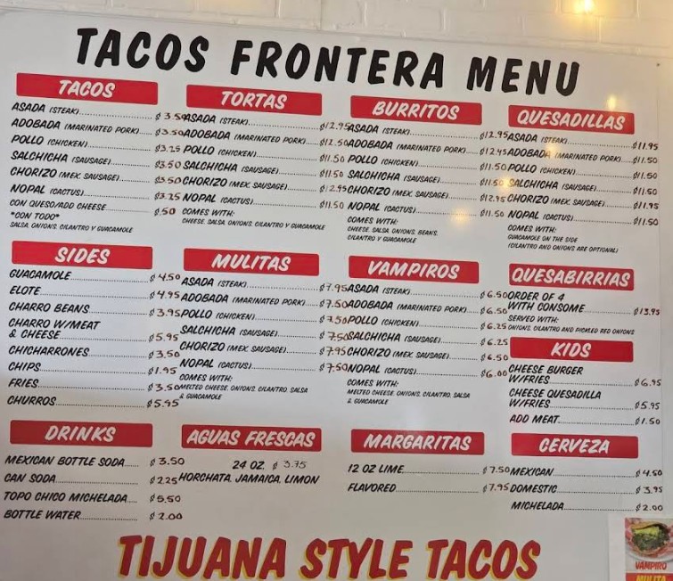 Tacos Frontera Restaurant brings the bold, authentic taste of Mexican street food to Houston, Texas. Known for freshly prepared tacos, flavorful meats, and traditional recipes, Tacos Frontera Restaurant offers a casual and welcoming dining experience for taco lovers of all kinds. Whether you’re stopping by for a quick bite or enjoying a relaxed meal with friends, our menu delivers quality, flavor, and true Mexican comfort food every time.